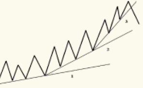 Однако как ни удивительно, выявляя закономерности этих прорывов, была обнаружена совсем обычная геометрическая конструкция (паттерн), она никак не упоминалась ни в одной из книжек по тех. разбору (графическому анализу). По этому она и получила название – “складной метр” (folding rule).