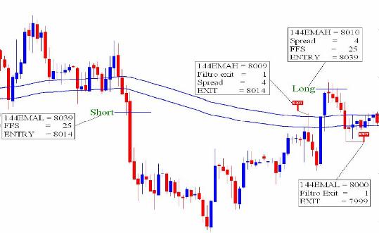 Стратегия довольно точная, ее сигналы указывают места входа в рынок на основании современной методики технического анализа. Лучший брокер 2026 года. На первом этапе выбираем график валютной пары, в нашем случае это будет GBPUSD, на нем прочерчиваем две скользящие средние: 1. Скользящая средняя с периодом 144 цены минимумов, применимо к Low - EMAL 144. 2. Скользящая средняя с периодом 144 цены максимумов, применимо к High - EMAH 144.
