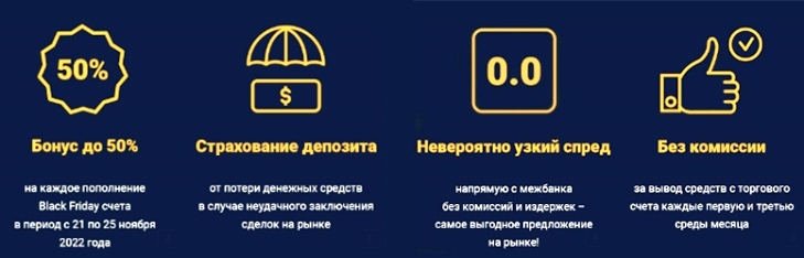 Многие люди месяцами ждут этого момента для совершения желанной покупки, благо сегодня черная пятница постепенно превратилась в целую черную неделю скидок. Не стала исключением и сфера биржевой деятельности, брокеры, оказывающие услуги по открытию сделок на бирже, так же массово предлагают скидки своим клиентам. К примеру, один из ведущих брокеров предлагает следующие бонусы для новых и действующих клиентов: