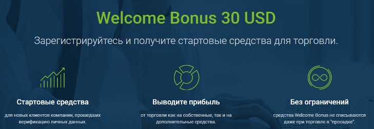 Действительно уникальное предложение от ведущей брокерской компании. • Бездепозитный бонус в 30 долларов, отличная возможность проверить работу брокера без риска: