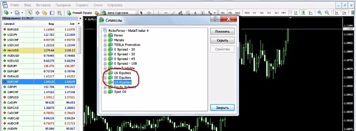 Использовать МТ4 инвесторы смогут в процессе работы с различными активами, в то числе для плодотворной торговли акциями, собственно сейчас мы и рассмотрим более детально этот процесс. Необходимо отметить, что все без исключения фондовые активы представлены в этом терминале в качестве CFD-контрактов, которые во многом идентичны с акциями, за исключением некоторых аспектов. Дело в том, что в процессе приобретения вышеуказанного контракта, покупатель не обзаводиться полным пакетом прав акционерного представителя, он всего лишь приобретает определенный комплекс полномочий, предусмотренный основами маржинальной торговли. В целом, такой принцип полностью соответствует механизму работы рынка Форекс, который предусматривает лишь заключение сделок спекулятивного характера. К примеру, вы приобретаете акцию не для того чтобы принимать активное участие в ее последующем развитии, вовсе нет, ваша основная цель – покупка актива за минимальную стоимость, в то время как последующая продажа осуществляется по более высокой цене. В итоге разница – прибыль вкладчика. Как работать с акциями в МТ4?Переходим от теории к практике, а именно давайте попытаемся пролить свет на вопрос, касающийся непосредственно активации акций в торговом терминале. Необходимо отметить, что ассортимент активов, будет в полной мере зависеть от брокерской компании, выбранной вами, поэтому у кого-то спектр доступных акций будет большим, а у кого-то меньшим. Что касается алгоритма действий относительно открытия акций в терминале, то он идентичен. Прежде всего, необходимо выбрать на панели инструментов вкладку обзор рынка.
