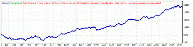 По тестам советника видно, что за определенный промежуток времени ему удалось разогнать депозит с 10 000 до 19 000, при этом трейдинг проходил не совсем гладко. За период работы возникло несколько крупных просадок, поэтому не лишним будет отладить систему контроля за убытками или самостоятельно контролировать его работу. |