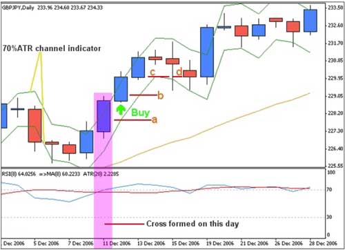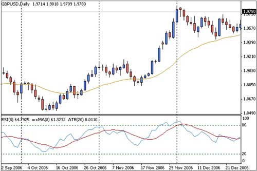 Это сделать довольно просто – Следует дождаться момента, когда произойдет пересечение линией индикатора RSI MA.
