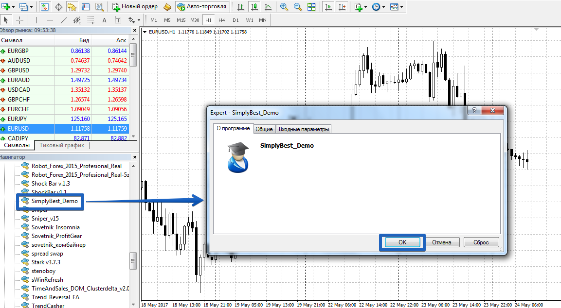 Советник SimplyBest. Скоростной мартингейл Скорость движения цены – это самая недооцененная характеристика рынка. Благодаря отслеживанию скорости изменения цены каждый трейдер может улавливать резкие ценовые импульсы. Стоит заметить, что на основе измерения скорости движения цены появились очень эффективные импульсные стратегии форекс. Главная цель таких стратегий – уловить кратковременный импульс в независимости от его направления. Однако в ручном режиме реализовать эффективно подобные стратегии довольно сложно, поскольку, подобные движения возникают лишь на считанные секунды или минуты. Советник SimplyBest – это торговый эксперт, который улавливает возникшие резкие ценовые импульсы на основе измерения скорости движения цены. Стоит заметить, что эксперт SimplyBest использует в качестве мани менеджмента классический мартингейл, открывая новый ордер удвоенным лотом, в случае если предыдущая сделка будет зафиксирована по стоп приказу. Поскольку эксперт не анализирует график, а лишь замеряет скорость изменения тиков за определенный промежуток времени, его можно наносить на любой тайм фрейм. Помимо этого стоит заметить, что эксперт SimplyBest мультивалютный и может применяться на любой валютной паре в зависимости от предпочтений трейдера. Установка советника Для установки советника SimplyBest, в виду его отсутствия по умолчанию в торговой платформе МТ4, вам необходимо выполнить скачивание файла эксперта в конце статьи, после чего выполнить процедуру его установки в ваш торговый терминал. Процедура установки советника происходит по стандартной схеме, а именно вам потребуется сбросить скачанный файл эксперта Советник SimplyBest в соответствующую папку каталога данных терминала. Для того чтобы войти в каталог данных запустите ваш торговый терминал МТ4 и в левом верхнем углу зайдите в меню файл. Затем вы увидите список опций, среди которых отыщите строку с названием «Открыть каталог данных» и запустите ее. Запустив каталог данных, на экране вашего монитора отобразится список системных папок платформы, среди которых отыщите папку с названием Expert и сбросьте в нее скачанный файл советника.