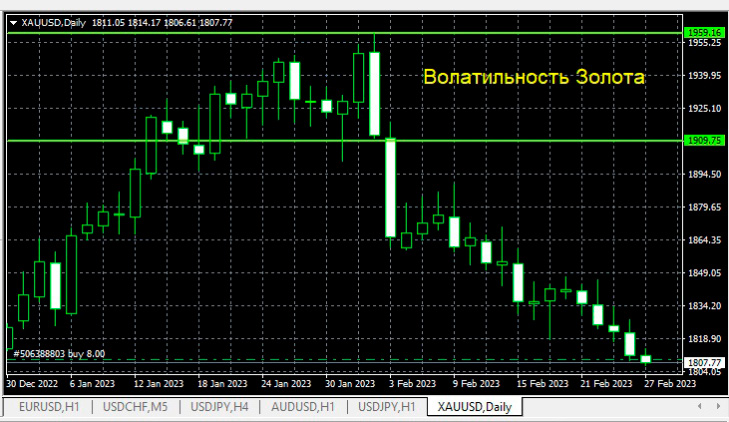 При этом большинство долгосрочных инвесторов используют, привычную им, стратегию «Покупай и держи» совершенно не учитывая дополнительную комиссию своп за перенос сделок. В среднем размер свопа за перенос сделок по XAU/USD составляет не так уж и много всего 3% в год, это намного меньше, чем спред по золотым слиткам в реале. Но если вы при открытии позиции использовали кредитное плечо 1:10 то и сумма комиссии увеличится также в десять раз и вырастит до 30% годовых. При этом если цена золота за год не изменится, своп придется заплатить в любом случае и сделка принесет большие убытки. В то время как использование кредитного плеча более крупного размера и вовсе может привести к досрочному закрытию позиции. Ведь не смотря на традиционные представления, золото не только дорожает. Поэтому если вы решили инвестировать в золото на долгий срок, используя торговую платформу, желательно вовсе отказаться от кредитного плеча. Кредитное плечо при внутридневной торговле золотомБлагодаря не высокой комиссии пара XAU/USD активно используется и при краткосрочной торговле, а высокая волатильность приносит хорошую прибыль: