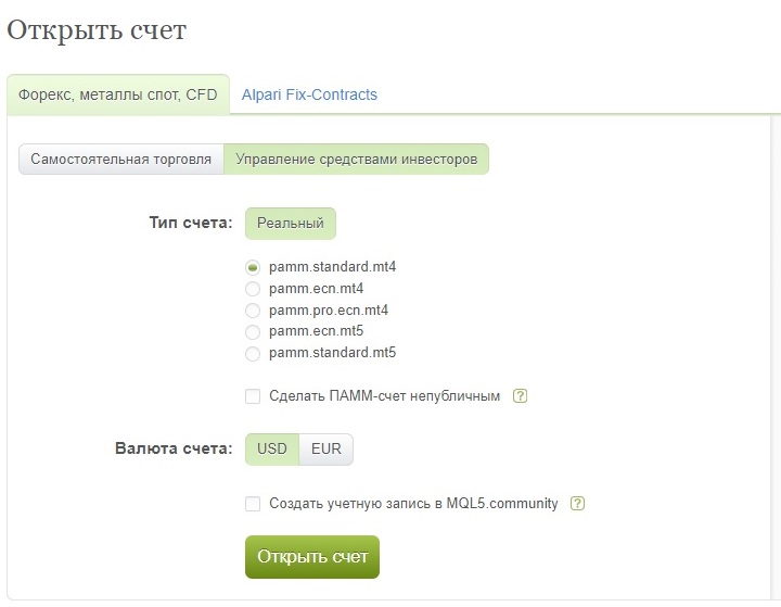 Фактически управляющий капиталом - это следующая ступенька развития профессионального трейдера, которая открывает не ограниченные возможности для заработка. Топ управляющие зарабатывают по несколько сотен миллионов долларов в год, управляя суммами в миллиарды долларов. Можно назвать несколько преимуществ ПАММ счета управляющего основными, из которых являются – неограниченный источник средств, анонимность, отсутствие ответственности перед инвесторами. Вы несете только моральную ответственность за потерю денег в результате не удачной сделки. Как стать ПАММ управляющим?Стать ПАММ управляющим довольно просто, для этого нужно всего лишь открыть счет у одного из ПАММ брокеров - http://forexluck.ru/ivest/pamm-brokery и пройти верификацию. После переходим к открытию нового счета, при этом выбираем «Управление средствами инвесторов»: