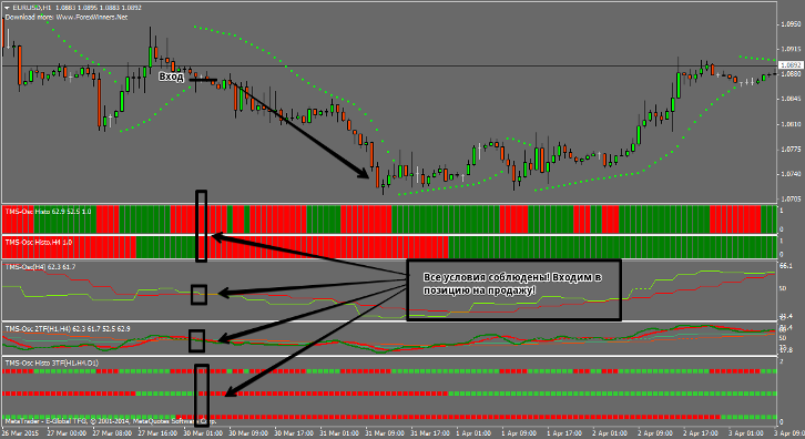 Стратегия TMS Oscillator Trade systemsМногие новички при создании торговой стратегии часто забывают о балансе между индикаторами. Процентов 90 начинающих выбирают красивые графические индикаторы, забывая об их функциональности, а тем боле об их предназначении. TMS Oscillator Trade systems – индикаторная трендовая торговая стратегия, которая на 99 процентов состоит из одних осцилляторов. Подготовка к работе