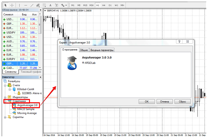 Принцип работы помощника. Настройки Принцип работы ArgoAverager довольно прост и заключается он в том, чтобы усреднить и вывести в прибыль ваши убыточные ордера. После того как вы открыли ордер нанесите советник на эту валютную пару. Советник зафиксирует данный ордер и выставит отложенный с увеличенным лотом на определённой дистанции, которую вы зададите в настройках. Итак, давай кратко о настройках: