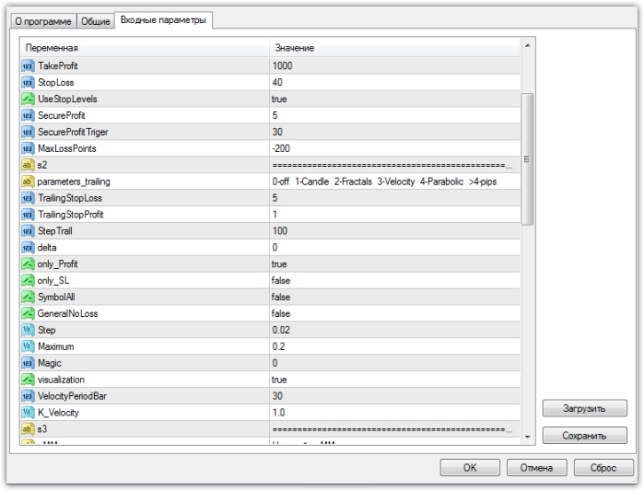 Стратегия советника. Настройки советника «Ангел Менадель» Советник «Ангел Менадель» является индикаторным роботом и принимает торговые решения на основе таких индикаторов как скользящее среднее, CCI, ATR, WPR, а также популярного платного индикатора Velocityю. Стоит отметить, что эксперт имеет очень гибкую систему управления капиталом, а также ряд вспомогательных фильтров, благодаря которым советник имеет отличные результаты без применения мартингейла или локирования.