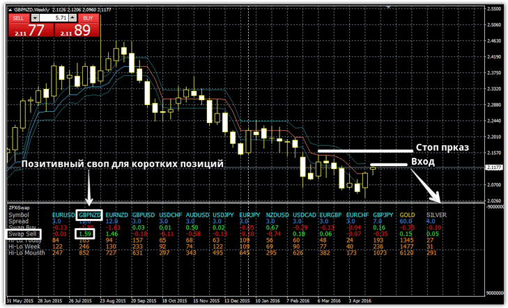 Для более опытных трейдров не секрет, что за перенос нашей позиции на следующий день мы платим брокеру комиссию в виде так называемого свопа или наоборот получаем на свой баланс позитивный своп по сделке.