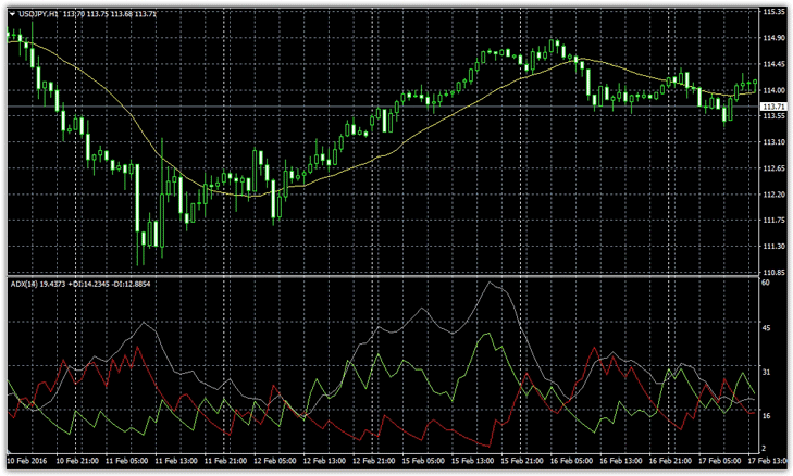 Так сложилось, что с активным развитием биржевой торговли в свободном доступе появляется все больше различных торговых стратегий, которые в свою очередь имеют очень красивый окрас, но теряют самую главную и базовую функцию – нахождение и четкое определение тренда. Популярность, да и функциональность трендовых стратегий падает с каждым годом, поскольку трейдеры пытаются устранить самую значимую уязвимость таких стратегий – запаздывание сигнала. Однако в такой гонке, сами того не осознавая все стратегии становятся осцилляторами, которые дают много сигналов, а об их эффективности довольно сложно говорить вслух. Шаблон ADX – это стандартное торговое решение от разработчиков Meta Trader 4 для трейдеров, которые остаются верными базовому правилу любого биржевика - «Trend is your friend!». В основе шаблона ADX лежит два самых популярных индикатора: скользящая средняя и ADX. В виду того, что эти индикаторы имеют запаздывающий эффект, как и любой трендовый индикатор, шаблон рекомендовано применять на часовых и выше графиках. Дело в том, что на малых тайм фреймах ситуация настолько динамична, что трендовые индикаторы своим запаздыванием предоставляют очень большое количество сигналов на окончании микро движений. На больших тайм фреймах рынок менее динамичен и переменчив, поэтому одна позиция может приносить просто огромный процент прибыли относительно потенциального риска, что с лихвой закрывает недостаток запаздывания сигнала. Установка шаблона ADXКак уже отмечалось шаблон ADX состоит из двух индикаторов, а именно скользящей средней с периодом 14 и ADX. Вы можете создать шаблон самостоятельно нанеся эти два инструмента на график, но намного проще войти в список шаблонав и запустить уже готовое решение от разработчиков МТ4. После запуска шаблона ADX у вас автоматически появится на графике эти индикаторы: