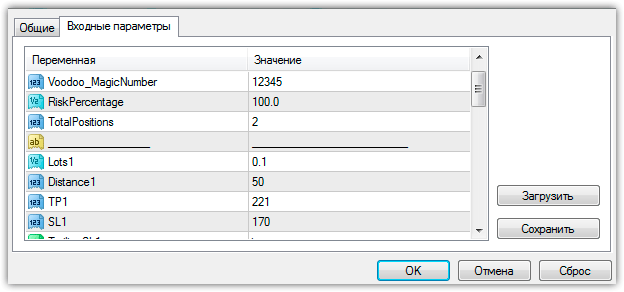 Параметр TotalPositions позволяет указать максимальное количество задействованных отложенных ордеров для усреднения. После основного блока настроек присутствуют настройки каждого отложенного ордера, а по умолчанию у нас их три. В строке Lots вы можете указать объем позиции отложенного ордера, а в строке distance расстояние между ордером открытым основным советником и отложенным ордером. Переменные TP и SL отвечают за размер прибыли убытка в пунктах для каждого ордера. Также вы можете включить трейлинг-стоп в строке TrailingSL. Благодаря параметру BEP вы можете указать расстояние в пунктах от цены открытия сделки после которого советник может переводить позицию в безубыток, а в строке Pips forBEP setup уровень прибыли ордера для того чтобы советник перевел его в безубыток. В заключение хотелось бы отметить, что если ваша стратегия или советник форекс прибыльный, то FxVoodoo Supplement поможет значительно укрепить его результативность и повысить количество прибыльных сделок. Однако если ваш эксперт изначально сливает депозит, то усреднение с помощью помощника FxVoodoo Supplement может только утроить ваши убытки. Скачать скрипт помощник FxVoodoo Supplement  |