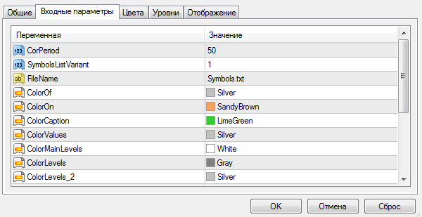 Помимо этого вы сможете выстроить корзину собственных ордеров для заработка на свопе, либо использовать дополнительные валютные пары в качестве источника прибыли по вашей стратегии. Настройки индикатора iCorrelationTable_v3 Благодаря настройкам индикатора, вы сможете изменить цветовую гамму таблицы, сделать необходимое смещение, а также задать собственный исторический отрезок, который бы вы хотели анализировать на предмет корреляции.