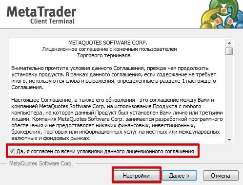 Установка терминала трейдера на флешку Биржевая торговля требует наличие торгового терминала непосредственно на вашем компьютере. Поскольку торговать из дому не всегда получается в силу разных причин (работа, семья, дети) трейдер всегда должен иметь под рукой флешку, на которой бы была установлена программа, для запуска которой вам бы понадобился любой рабочий ноутбук или пк. Поскольку зачастую компьютер лишь один в семье, наши дети могут копировать наши действия, а именно запустить программу или даже поторговать самостоятельно на ваши деньги. Чтобы этого не допустить, очень важно максимально обезопасить себя и убрать всю рабочую среду от посторонних глаз. Именно поэтому установка терминала на флешку позволяет не только иметь платформу под рукой, но и обезопасить ваши деньги от случайных ошибок вызванных членами вашей семьи. Процесс установки После скачивания торгового терминала со странички вашего брокера выполните запуск установочного файла. Внимательно ознакомитесь с пользовательским соглашением и вместо того чтобы привычно нажать далее выберите пункт в низу «Настройки».