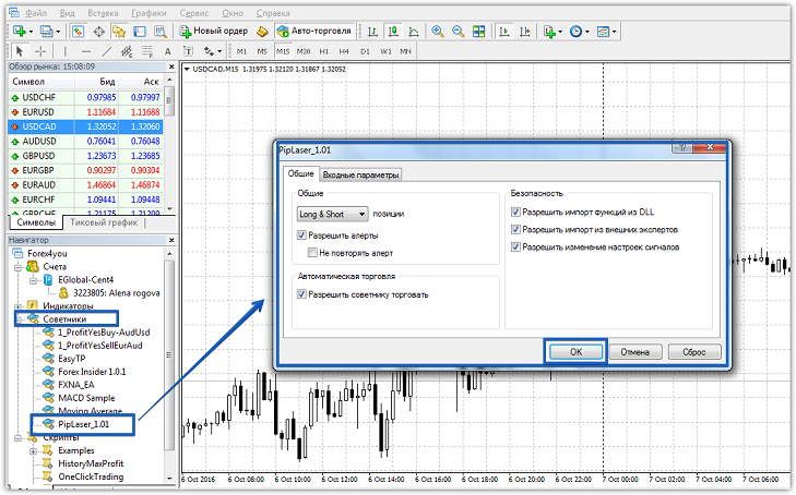 Советник PipSniper В последнее время особой популярностью пользуются советники на основе скальпреских стратегий. Дело в том, что советники на основе мартингейлов изрядно поднадоели трейдерам, поскольку они не просто переполнили сегмент автоматизированной торговли, но и часто приводят к плачевным последствиям для депозита. Да, конечно данного типа эксперты отлично подходят начинающим, неопытным биржевикам в виду того что алгоритм работы таких роботов банально простой, причем с ним сможет разобраться даже школьник. Понимание того что мартингейлы слишком рискованный для депозита наводит на вполне закономерный вопрос, а на какой тип экспертов их заменить? Ответ – на скальперские советники. Только скальпинговые тактики способны обеспечить практически идентичную доходность, причем риск потери депозита в один момент попросту отсутствует. Конечно, скальперы тоже не все прибыльны, однако процесс слива депозита происходит настолько медленно, что спустя 5-10 убыточных сделок трейдер поймет что следует что-то менять, и потеря будет минимальна. Советник PipSniper – это ярый представитель скальперских роботов, который заточен под технически особенности только одной валютной пары. PipSniper предназначен для торговли на пятнадцатиминутном графике валютной пары USDCAD, поскольку ее волатильность в ночное время позволяет открывать роботу практически безубыточные сделки. Стоит отметить, что PipSniper является скальперским роботом, поэтому для его эффективной работы размер сперда по валютной паре должен быть минимален. Установка PipSniper Робот PipSniper был разработан для торговли через торговый терминал МТ4, поэтому вам придется скачать в конце статьи специальные файлы и установить их в торговый терминал. После скачивания архива перед вами появится два файла, а именно библиотека и сам советник. Так, вам потребуется открыть каталог данных в торговом терминале через меню файл в вашем торговом терминале. Далее после того как вы откроете каталог данных обязательно найдите папку с названием Libraries и сбросьте в нее файл библиотеки, а также найдите папку с названием expert и сбросьте в нее PipSniper. Для того чтобы терминал увидел установленный эксперт достаточно перезапустить его. После перезапуска откройте пятнадцатиминутный график валютной пары USDCAD и перетащите PipSniper на график.