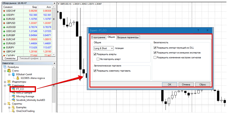 Советник CCI Как бы это странно не звучало, но самой большей популярностью среди трейдеров пользуются именно стандартные индикаторы. Дело в том, что в отличие от пользовательских инструментов, которые имеют очень приятный внешний вид и могут превосходить по качеству многие стандартные индикаторы, по ним очень мало дельной информации. Речь идет в первую очередь о том, что вы при первом же знакомстве с биржей можете наткнуться на описание самых популярных индикаторов, как в книгах, так и в самой торговой платформе вызвав дополнительную справку. Однако если поделить индикаторы по группам, то особой популярностью пользуются именно осцилляторы, причем ССI является одним из самых ярчайших представителей этой категории. Не смотря на популярность индикаторов с этой группы, очень малое количество трейдеров могут сказать наверняка об их эффективности. Советник CCI – это простейший торговый робот, который был создан на основе всего одного популярнейшего осциллятора CCI. Собственно появление данного эксперта стало результатом обычного эксперимента популярного биржевого журнала, который постарался ответить на простой вопрос об эффективности стандартных осцилляторов. Советник CCI – мультивалютный и мульти тайм фреймовый, поскольку CCI может применяться как составная часть любой торговой стратегии, причем на любом торговом активе и CFD в том числе. Эксперт поможет вам дать ответ, стоит ли вообще применять его как составную часть любой торговой стратегии. Установка советника в торговый терминал Прежде чем вы сможете получить ответ об эффективности данного робота, вам потребуется его скачать в конце странички и произвести установку в торговый терминал. Чтобы установить советник, пройдите в меню файл торговой платформы и среди списка опций выберите «Каталог данных». Получив доступ в каталог, вы увидите список системных папок, среди которых вам потребуется найти папку с названием expert и сбросить в нее скачанного советника CCI. После того как вы закроете системные папки пройдите в меню навигатор и на графе «Советники» вызовите дополнительное меню, в котором сделайте обновление. Обновив терминал, эксперт появится в списке советников, а для того чтобы начать торговлю вам потребуется, перетащите его на график любой валютной пары: