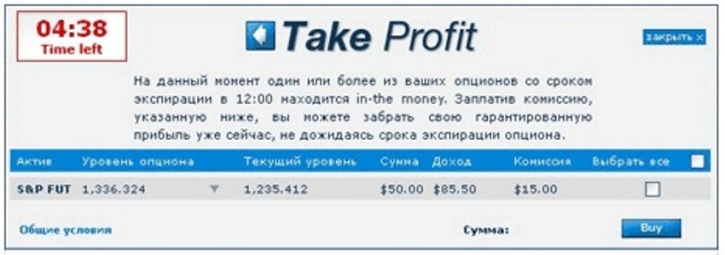Следует помнить, что применение Take Profit позволит игроку заработать на сделке, но прибыль будет меньше ожидаемой за счет комиссии. Другими словами, нужно отдать часть брокеру, чтобы получить остальную прибыль. На рисунке ниже изображена платформа Take Profit.