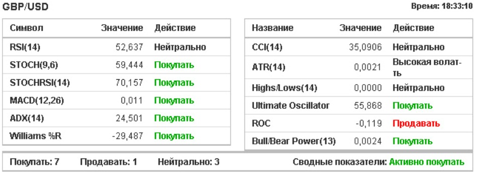 Как видим на рисунке выше, по каждому активу имеется два контракта и задача трейдера заключается в выборе правильной ставки. Выбираем, например, пару GBP/USD. Теперь проверим торговые сигналы, сделать это можно на любом сайте финансовых новостей.