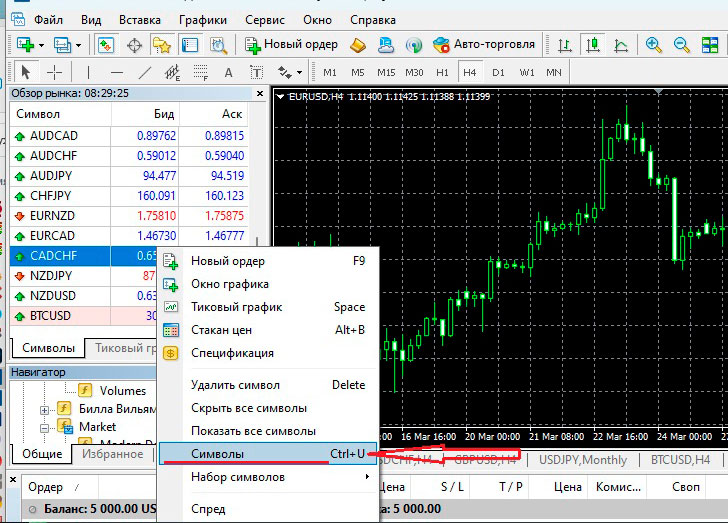 Или просто в запушённом терминале metatrader нажимаем клавиши Ctrl+U, после этого появляется окно со всеми доступными символами: