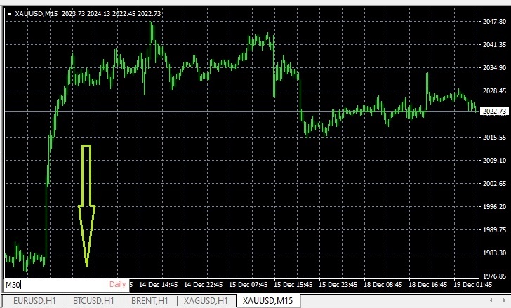 Нужна помощь при проведении пространственного анализа? Перейдите в раздел «История счета» и выберите интересующую вас сделку. Теперь перетащите ее на график (если на то пошло, любой график, поскольку MT4 автоматически перейдет к нужному). Вы сможете увидеть точки входа и выхода из этой конкретной сделки, четко обозначенные двумя стрелками, объединенными пунктирной линией тренда. Хотите быстрее и проще перемещаться по диаграмме? Используйте клавиши Page Up и Page Down для перемещения по всему экрану вперед или назад во времени. Нажмите End, чтобы перейти к последнему ценовому бару. Если вы смотрите исторические цены для тестирования стратегии или хотите научиться «читать» рынок, используйте F12 для перемещения графика по одному ценовому бару за раз. Чтобы скопировать (со всеми атрибутами, цветом, толщиной и т. д.) линию или любой другой объект: выделите ее (двойной щелчок), затем нажмите и удерживайте CTRL и перетащите дубликат куда угодно. Если вы хотите изменить длину линии, выберите ее, удерживайте клавишу Shift, а затем перетащите ее влево или вправо, чтобы изменить ее длину. Для переключения таймфреймов в полноэкранном режиме: нажмите Enter, а затем код нужного таймфрейма (например, M15, H4, D).