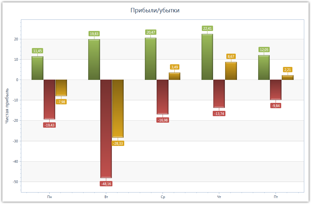При просадке всего в 5,4 процента убыток составил 2,4 процента. В сторону слабости выбранной нами торговой тактики говорит также и профит фактор 0.8. Поскольку каждая новость по-разному влияет на рынок, мы решили рассмотреть поведение стратегии по рабочим дням. Результат смотрим ниже: