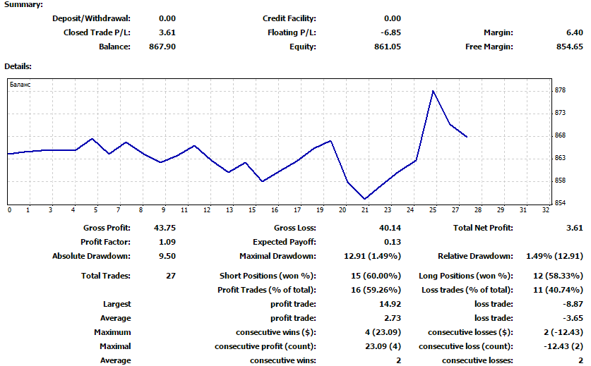 Не смотря на то, что итог тестирования оказался позитивным, а кривая доходности таки взяла восходящее направлении практически на протяжении всей недели мы топтались на одном месте, а именно то получали прибыль, то ее теряли. Как следствие мы имеем очень низкий профит фактор на уровне 1.09, но довольно позитивные результаты теста. В заключение стоит отметить, что даже в исходном виде как мы описали в статье, стратегия forex smart оказалась прибыльной, а результат тестирования тому подтверждение. Однако данная тактика не подходит новичкам, поскольку для того чтобы ее реализовать на практике и получить подобный результат вам придется всецело посвятить себя рынку. Скачать шаблон стратегии forex smart. |