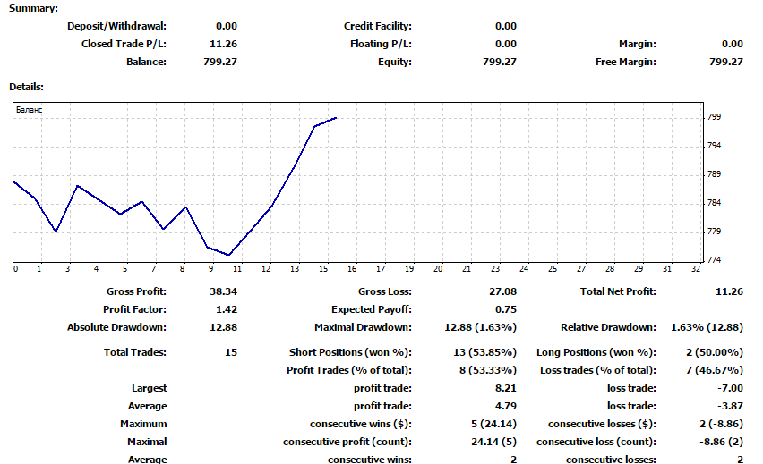 Поскольку соотношение профита к стопу было равным, а процент прибыльных сделок составил 53 процента на графике можно наблюдать позитивную динамику прироста. Максимальная просадка не доходила до двух процентов, а серийность стратегии была на стороне прибыли. Профит фактор остался также на относительно нормальном уровне, а именно 1.42. В заключение нам ничего не остается кроме как констатировать, что уровни коррекции – это действительно рабочий торговый инструмент, которым необходимо пользоваться. Именно поэтому мы смело можем рекомендовать вам стратегию к применению на реальном счете. Скачать индикатор коррекции. |