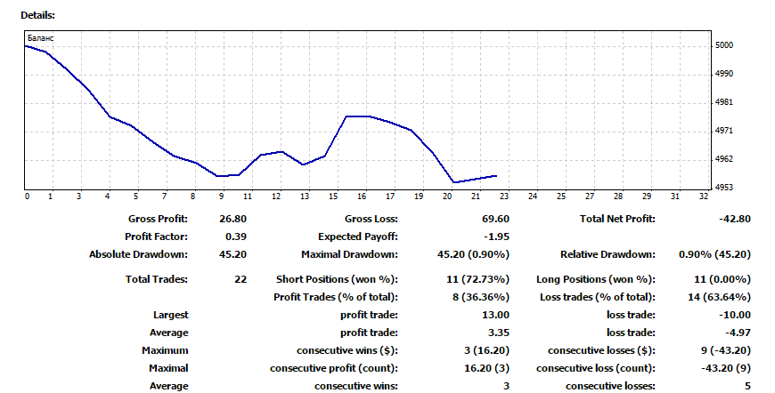 Однако, не смотря на огромную активность рынка большинство сделок, закрылись с убытком, причем 14 из них были закрыты по стоп лосс, а лишь 8 по профиту. В сторону слабости стратегии указывает ее серийность, а именно мы зафиксировали пять убыточных сделок в подряд, что для такого малого промежутка много. Также в сторону слабости выбранной стратегии указывает крайне малый профит фактор, который составляет всего 0.39. В заключение стоит отметить, что индикатор BlackGold и стратегия на его основе не оправдали наши ожидания, поэт ому мы не рекомендуем применять данный инструмент на реальном счете, а рекомендуем использовать уже протестированные стратегии с нашего раздела. Скачать шаблон стратегии для торговли нефтью. |