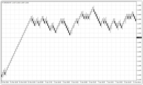 С одной стороны такой подход к построению графиков позволяет более глубоко смотреть на поведение цены, ведь мы видим на графике все торможения и консолидации и так называемые боковики. Однако в тоже время создается очень большое количество шумов, которые зачастую вводят многих трейдеров в заблуждение.