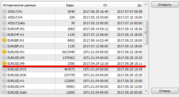 Торговая платформа метартейдер использует стандартную схему построения свечных и барных графиков.