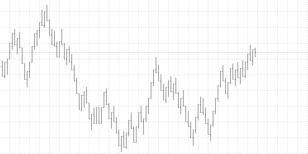 На сформированном графике синтетических баров можно применять все элементы технического анализа, начиная от графических фигур и построений лини с уровнями, заканчивая применением технических индикаторов. |